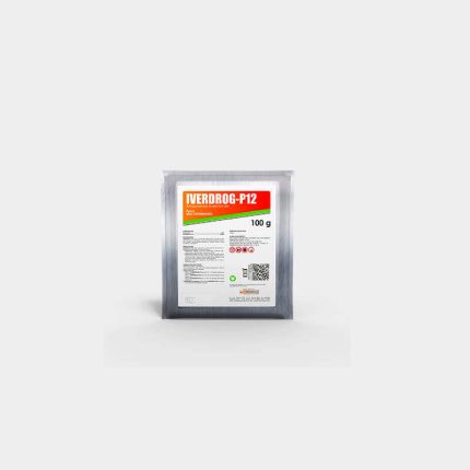 IVERDROG P12 es un producto endectocida formulado para administrarse en el alimento, y que actua hiperpolarizando la neurona del parásito, produciéndole parálisis y muerte. Eficaz contra nematodos y artrópodos.