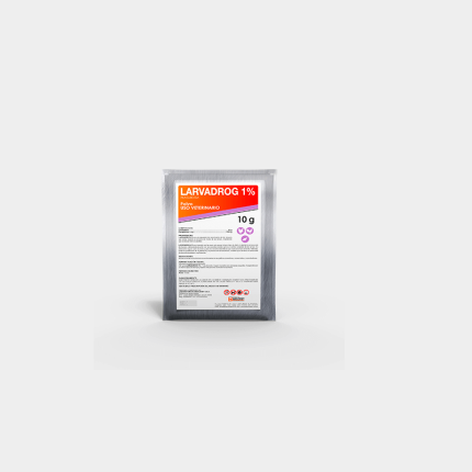 LARVADROG 1% es ingerido por las aves sin causar ningún tipo de daño ni afectar la producción de huevos, eliminándose junto con las excretas donde ejerce el control completo de las larvas. Es altamente seguro para las aves y para los insectos benéficos que viven en el excremento. Además, evita la licuefacción de la gallinaza y la producción de amoniaco, irritante que favorece el desarrollo de las enfermedades respiratorias.