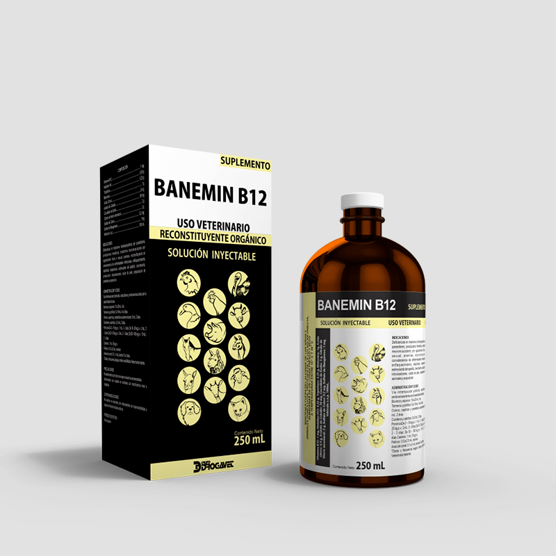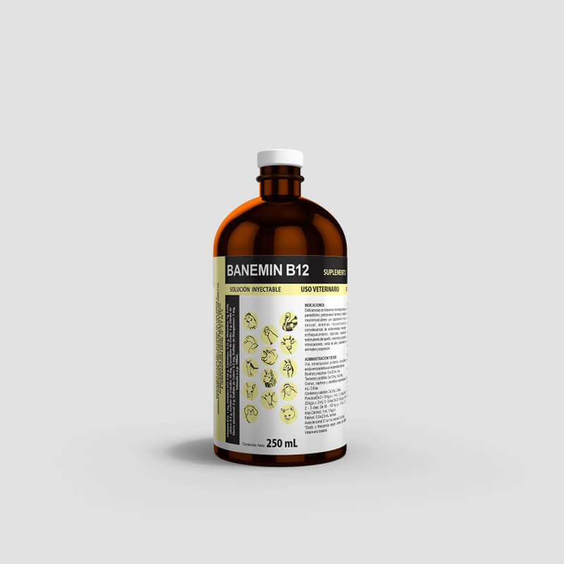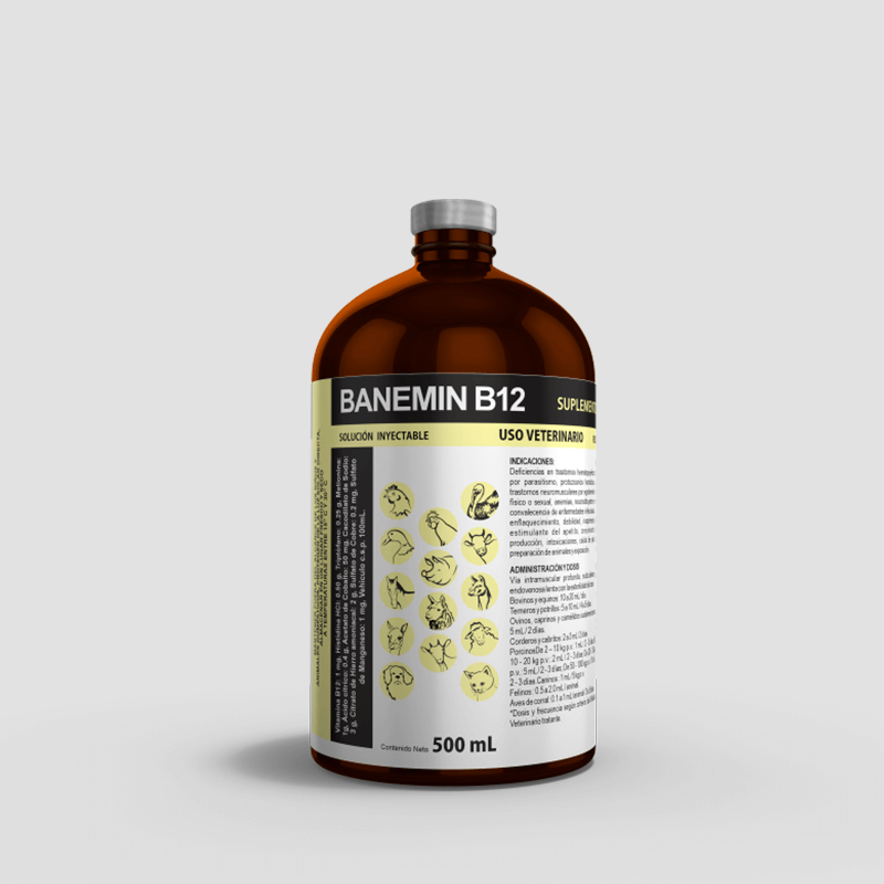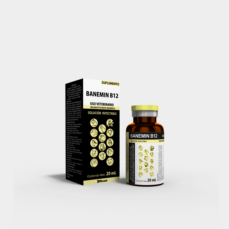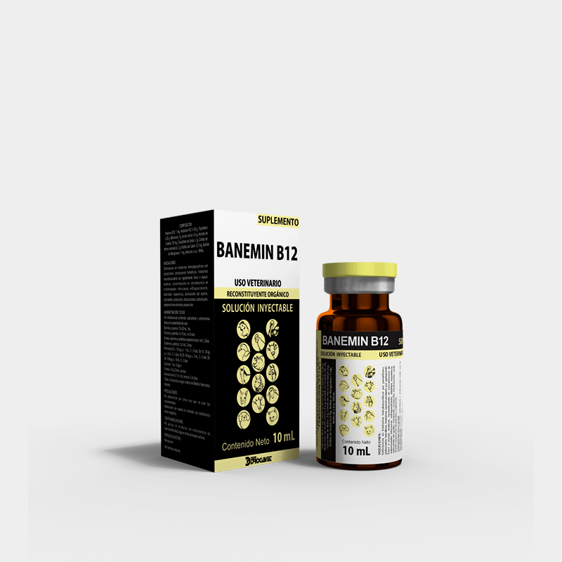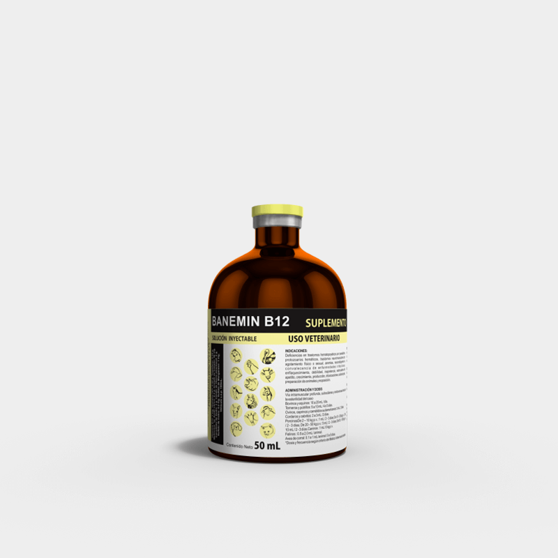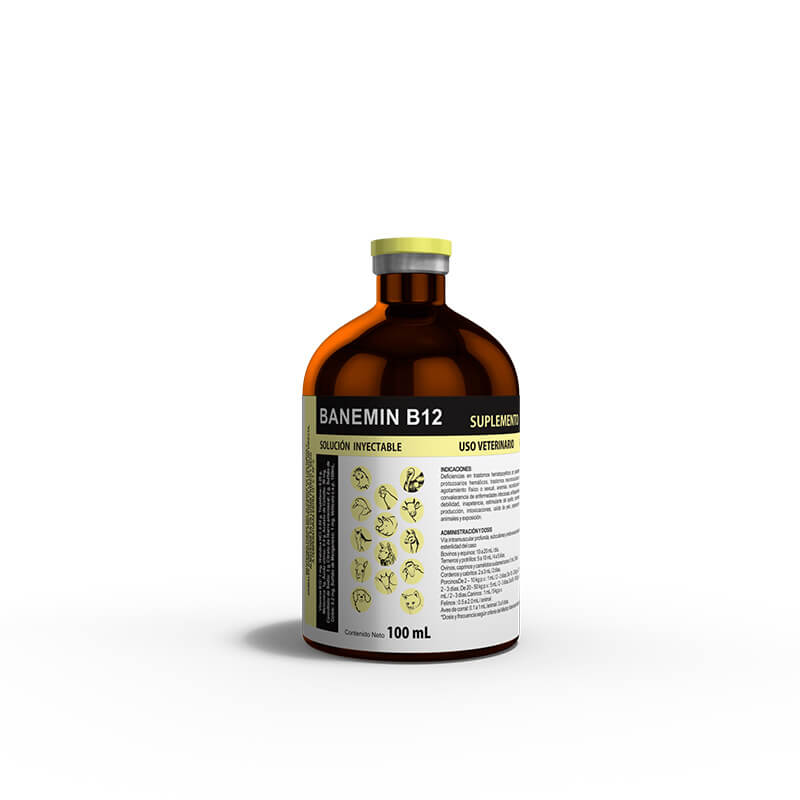 BANEMIN B12 es un reconstituyente orgánico, antianémico, tónico y antitóxico, a base de sales de hierro, arsenicales, cobalto, aminoácidos y suplemento de vitamina B12.