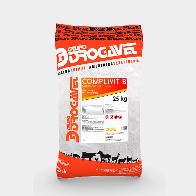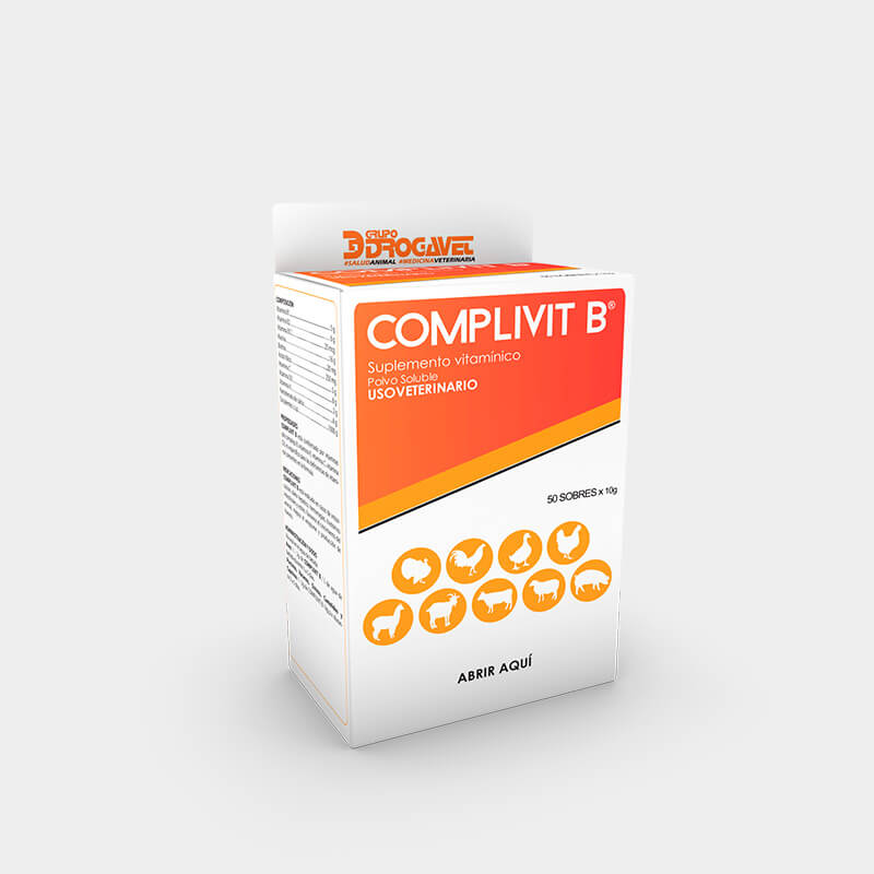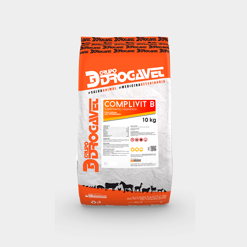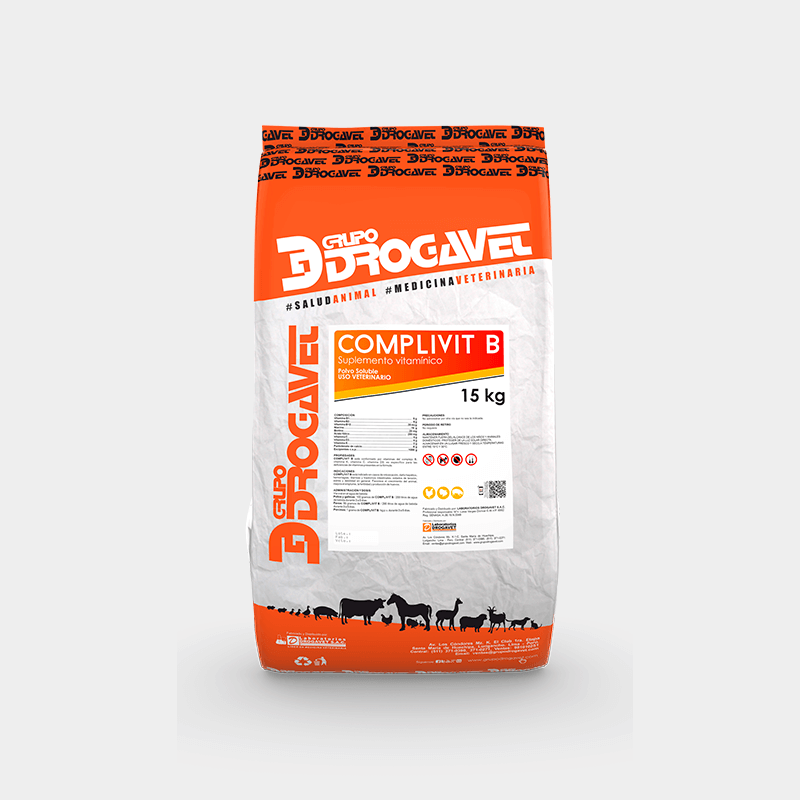 COMPLIVIT B is indicated in cases of intoxication, liver damage, hemorrhages, diarrhea and intestinal disorders, stress and weakness in general. It favors the growth of the animal, improves feathering, fertility and egg production.
