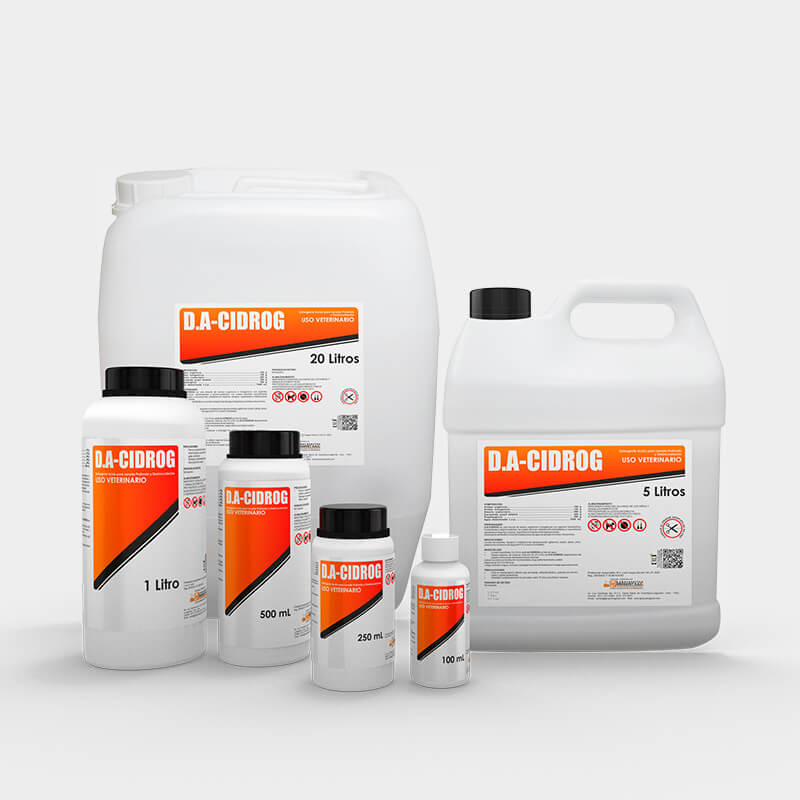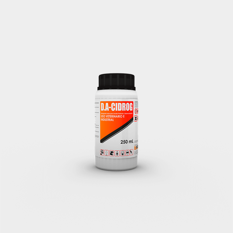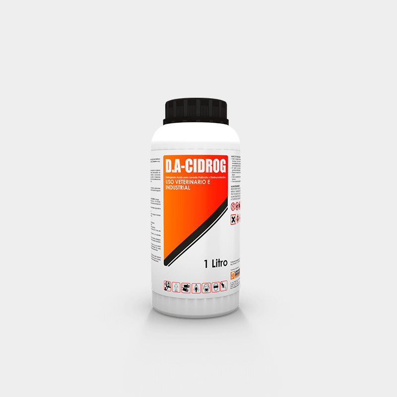 D..A-CIDROG es una mezcla de ácidos orgánicos e inorgánicos con agentes tenso activos, humectantes y desincrustantes, los cuales eliminan rápidamente precipitados y concreciones calcáreas en tuberías, equipos, superficies e instalaciones agropecuarias. Eliminación del biofilm a nivel de instalaciones de agua de granjas avícolas y de porcinos.