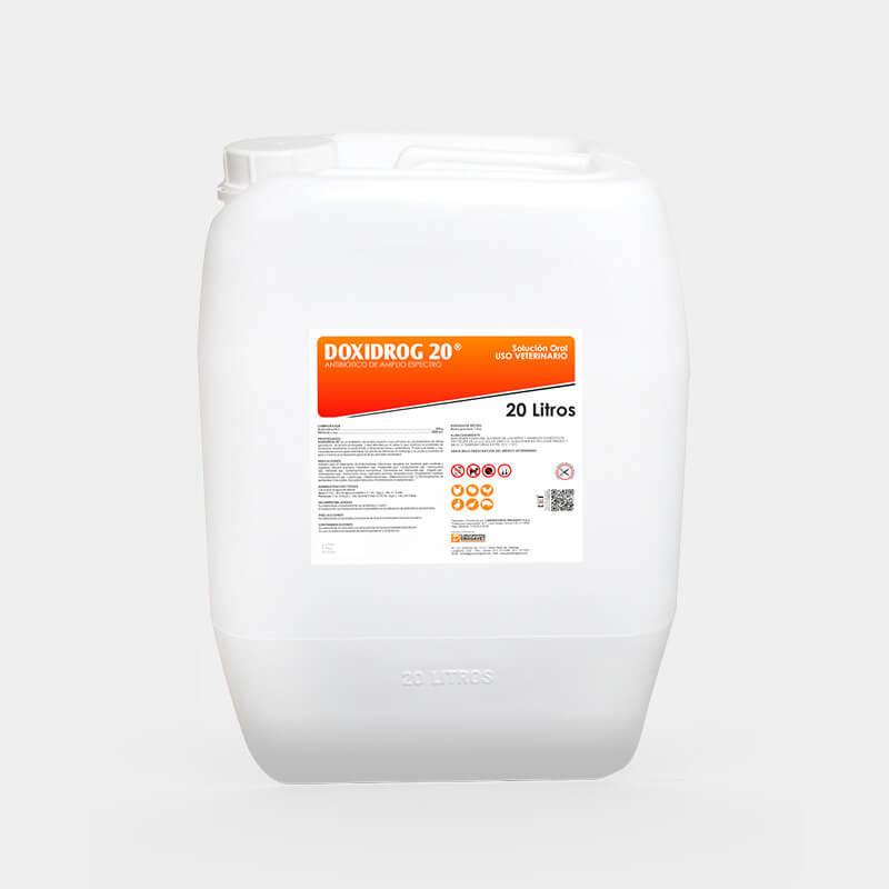DOXIDROG 20 es un antibiótico de amplio espectro cuyo principio es una tetraciclina de última generación, de acción prolongada, y baja afinidad por el calcio lo que minimiza la posibilidad de producirse resistencia cruzada frente a otras tetraciclinas o antibióticos. Posee una rápida y muy completa absorción gastrointestinal. No afecta las defensas inmunitarias y no produce pérdidas de peso o merma en el desarrollo general de los animales medicados.