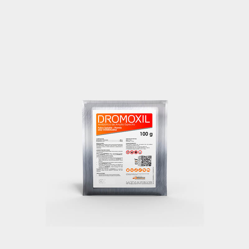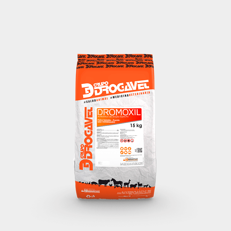 DROMOXIL is indicated in poultry and pigs for the treatment of salmonellosis, colibacillosis, infectious coryza, C.R.D., septic arthritis, pasteurellosis and clostridiosis.