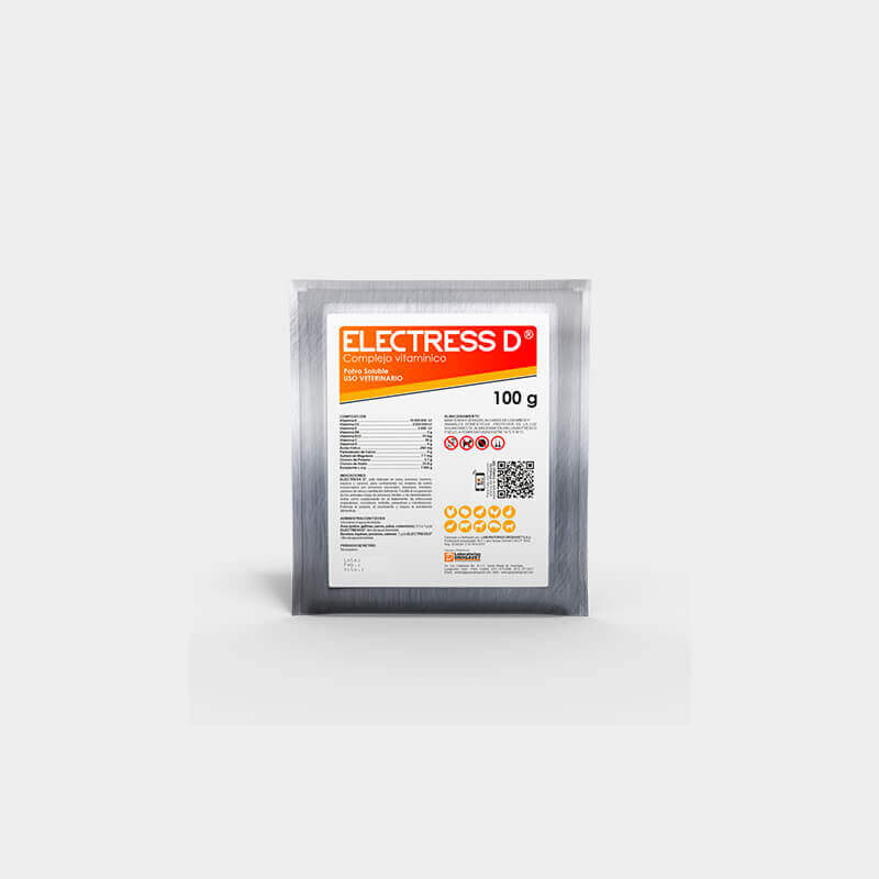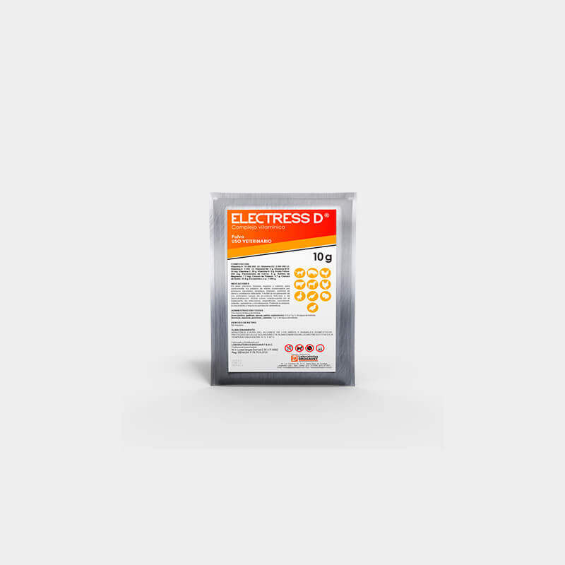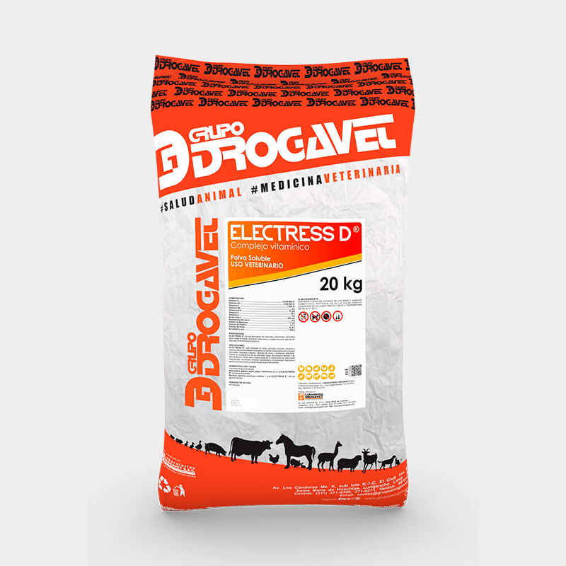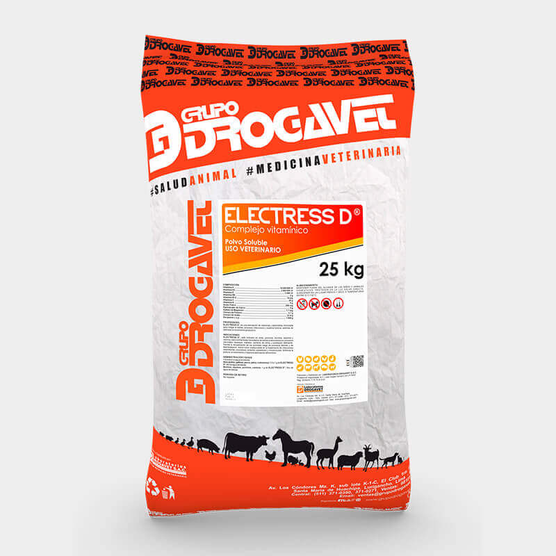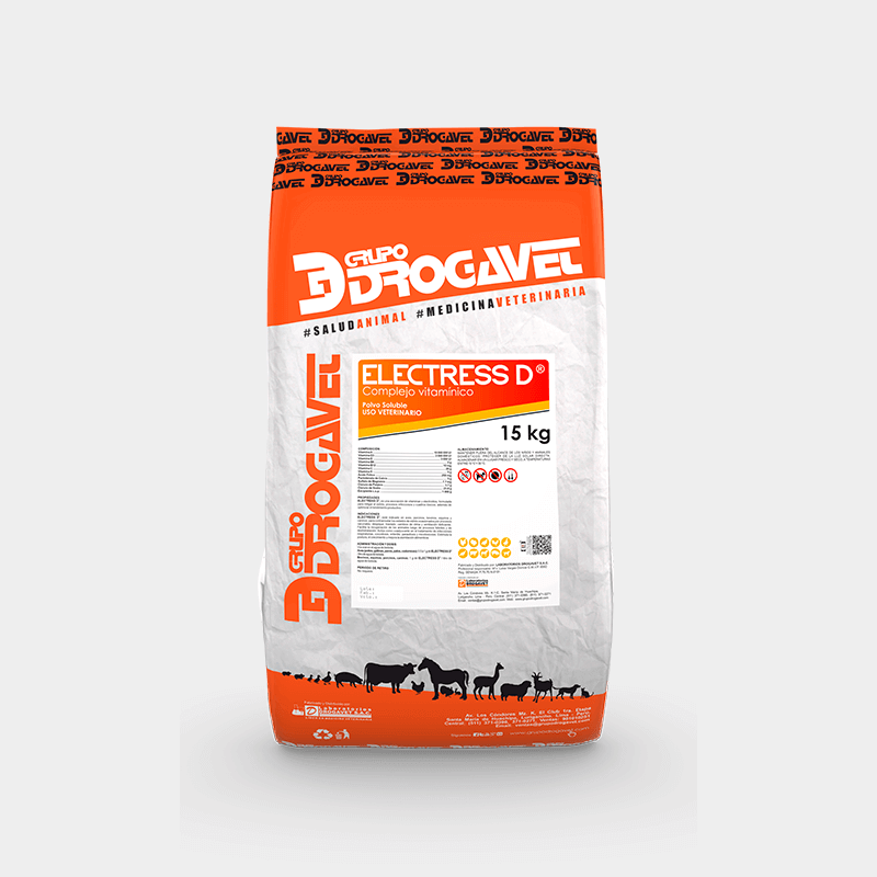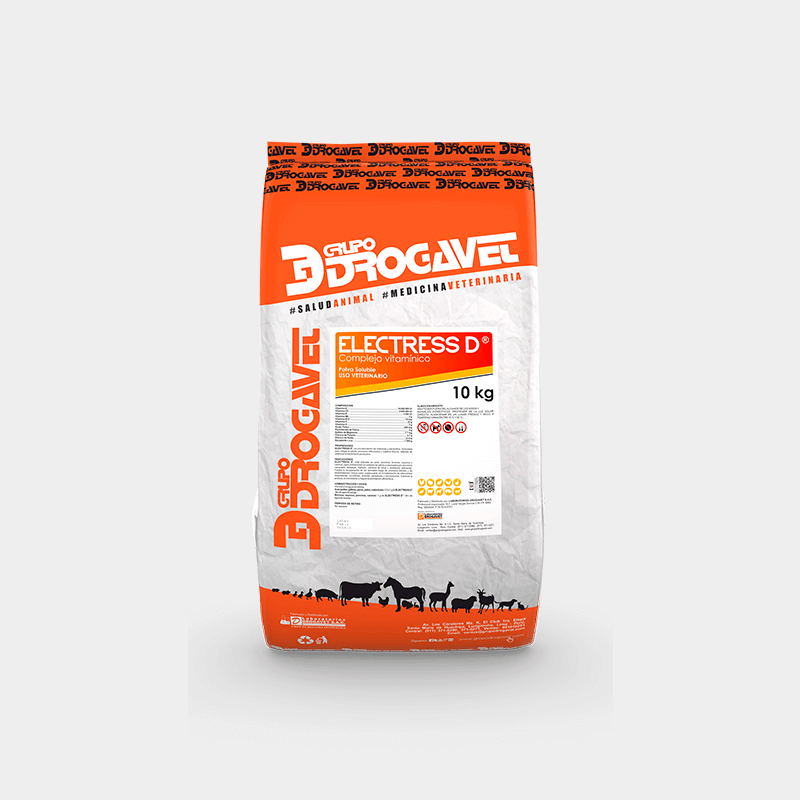 ELECTRESS D , es una asociación de vitaminas y electrolitos, formulada para mitigar el estrés, procesos infecciosos y cuadros tóxicos; además de optimizar el rendimiento productivo.