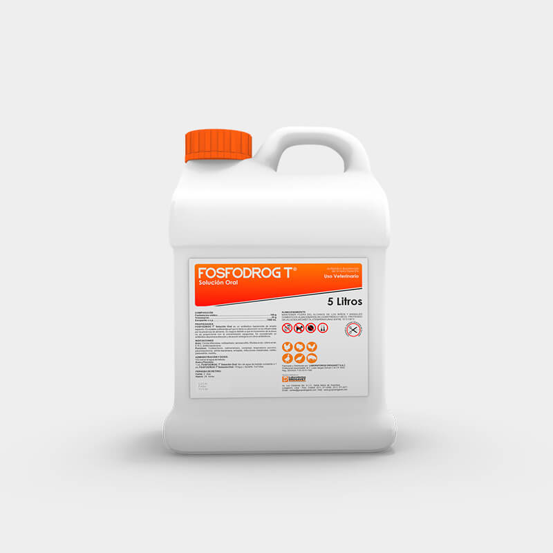 FOSFODROG T Solución Oral es un antibiótico bactericida de amplio espectro que tiene como principios activos a la fosfomicina y al trimetoprim. La fosfomicina actúa inhibiendo la formación de la pared celular y el trimetoprim actúa en la inhibición de la ruta enzimática para la síntesis del nuevo material genético de la bacteria; además esta combinación es eficaz para tratar enfermedades producidas por bacterias gram positivas y gram negativas.