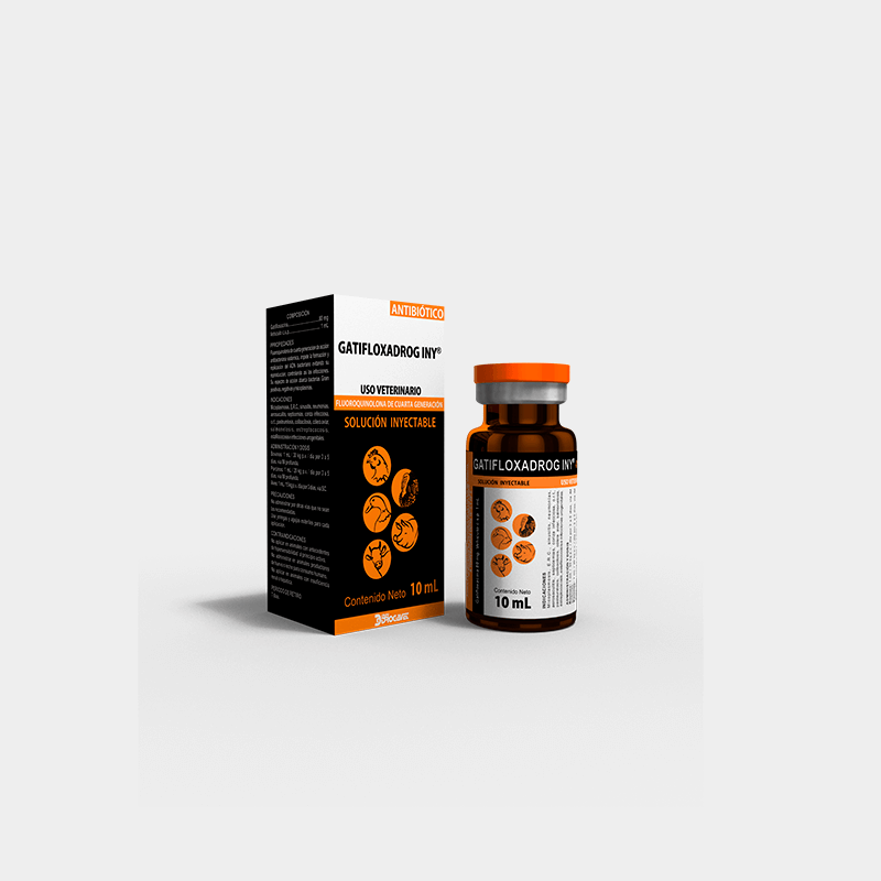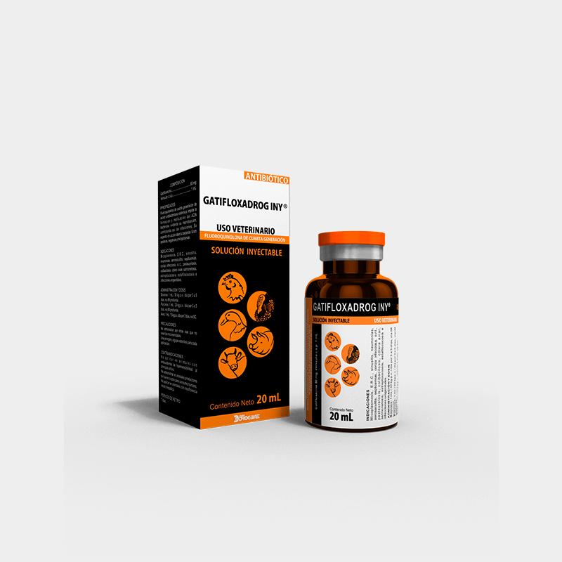GATIFLOXADROG INY está compuesto por una fluoroquinolona de cuarta generación que tiene acción antibacteriana sistémica. Controla las infecciones impidiendo la formación y replicación del ADN bacteriana; además, su espectro de acción abarca bacterias gram positivas, gram negativas y micoplasmas.