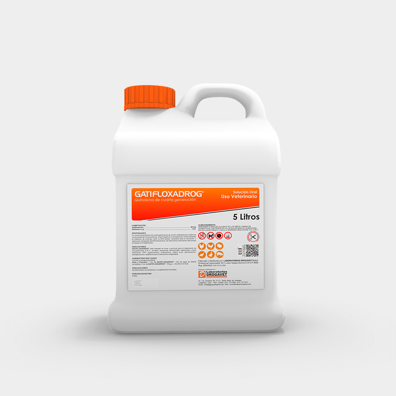 GATIFLOXADROG está indicado en aves y porcinos para el tratamiento de micoplasmosis, E.R.C., sinusitis, neumonías, aerosaculitis, septicemias, coriza infecciosa, ORT, pasteurelosis, colibacilosis, cólera aviar, salmonelosis, estreptococosis, estafilococosis e infecciones urogenitales.