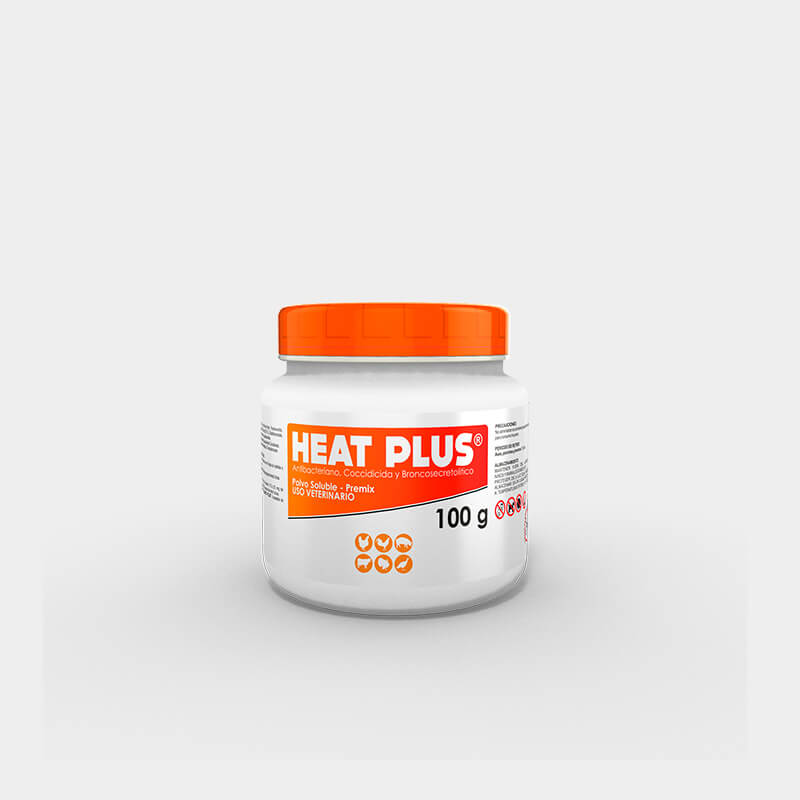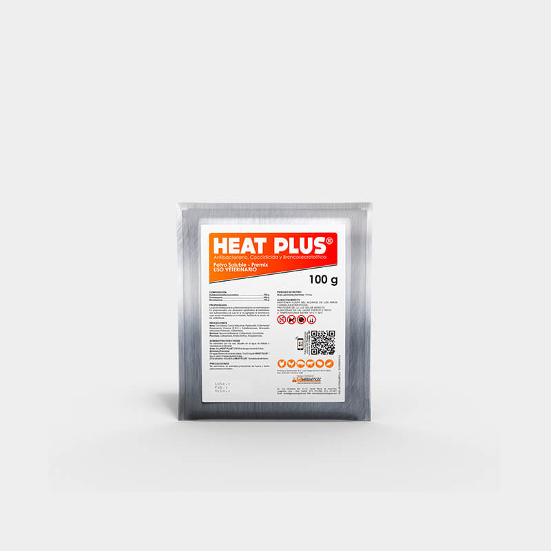 HEAT PLUS , está constituído por la asociación de dos potentes agentes antibacterianos y un expectorante mucolítico. La acción sinérgica de la sulfamonometoxina con el trimetoprim ha proporcionado una dimensión significativa al tratamiento con sulfonamidas y al cual se le ha agregado la bromhexina cuya acción terapéutica es inmediata, facilitando la acción de los antibióticos. La sulfamonometoxina actúa bloqueando la síntesis del ácido dihidrofólico y el trimetoprim inhibe la enzima hidrato reductasa para impedir la formación del ácido tetrahidrofólico (ácido folínico) el cual es necesario para la síntesis del ADN bacteriano.