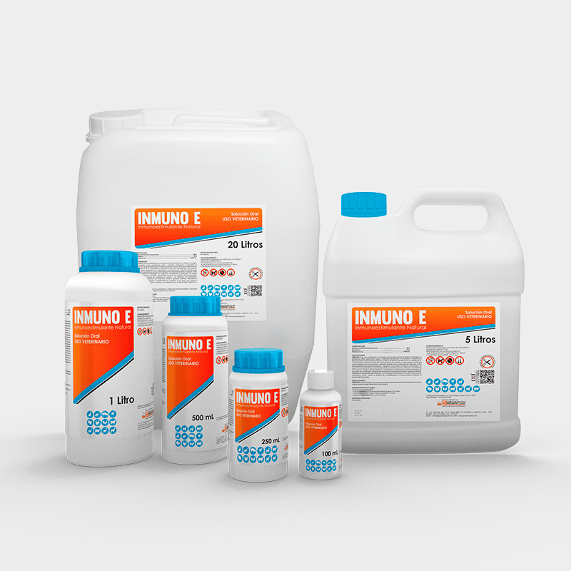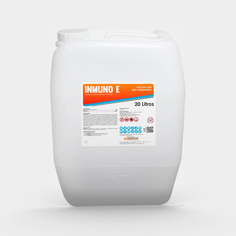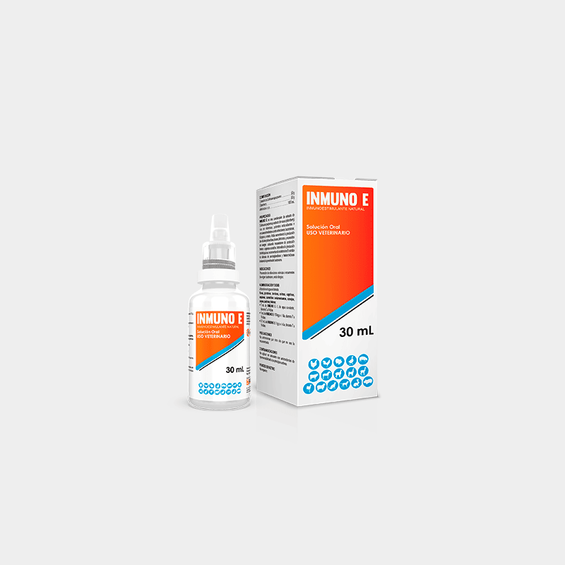 INMUNO E es una combinación de extracto de Echinacea purpurea y extracto de sauco (elderberry) rico en vitaminas, potentes antioxidantes e inmunoestimulantes contra infecciones bacterianas, fúngicas y virales. Actúa aumentando la producción de células polimorfonucleares, linfocitos, y monocitos en sangre, activando mecanismos de protección frente a agentes extraños.