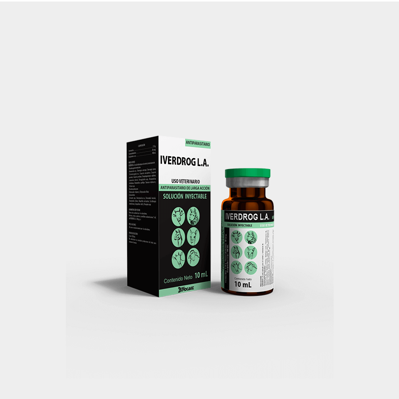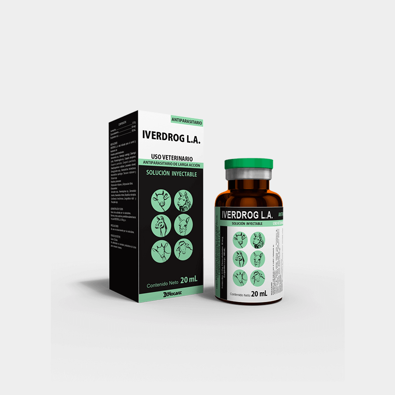 IVERDROG L.A. es una solución endectocida de larga acción. Es efectivo para el tratamiento, control y prevención por largos períodos de nematodos gastrointestinales (adultos y juveniles) y pulmonares (adultos), garrapata, piojos chupadores y ácaros de la sarna sarcóptica y psoróptica. Previene el desarrollo de miasis. Por su composición con cianocobalamina (vitamina B12) es especial para la recuperación de los diferentes estados de anemia y convalescencias por enfermedades parasitarias.