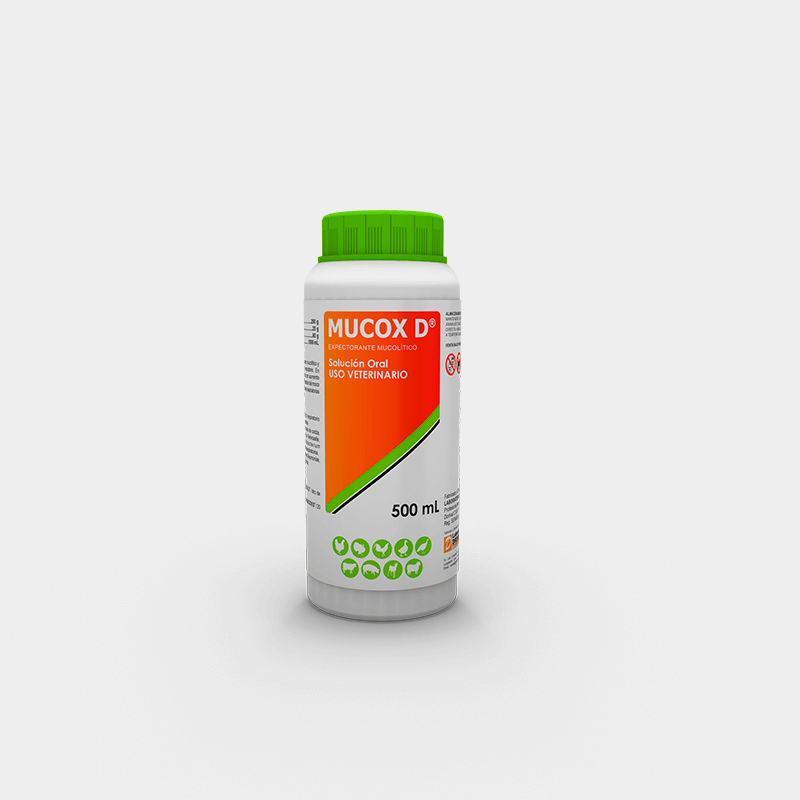 MUCOX D, es un potente expectorante, mucolítico y fluidifica los exudados del aparato respiratorio. En irritaciones crónicas provoca hiperemia con aumento de secreción despejando el árbol respiratorio del moco y la flema, producidos por enfermedades respiratorias o reacciones postvacunales fuertes.