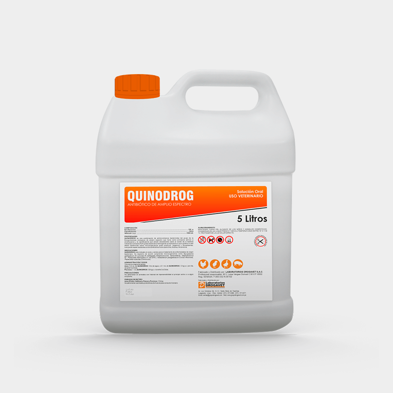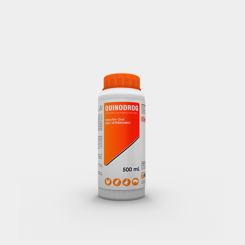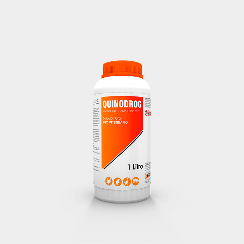 QUINODROG está indicado en aves y cerdos para el tratamiento de enfermedades de origen bacteriano. Su espectro de acción comprende microorganismos como Mycoplasma gallisepticum, M. synoviae, M. meleagridis, Streptococcus sp., Salmonella sp., Staphylococcus sp., Pasteurella haemolytica, E. coli (ERC), Avibacterium paragallinarum (Coriza infecciosa), Pasteurella multocida (Cólera aviar).