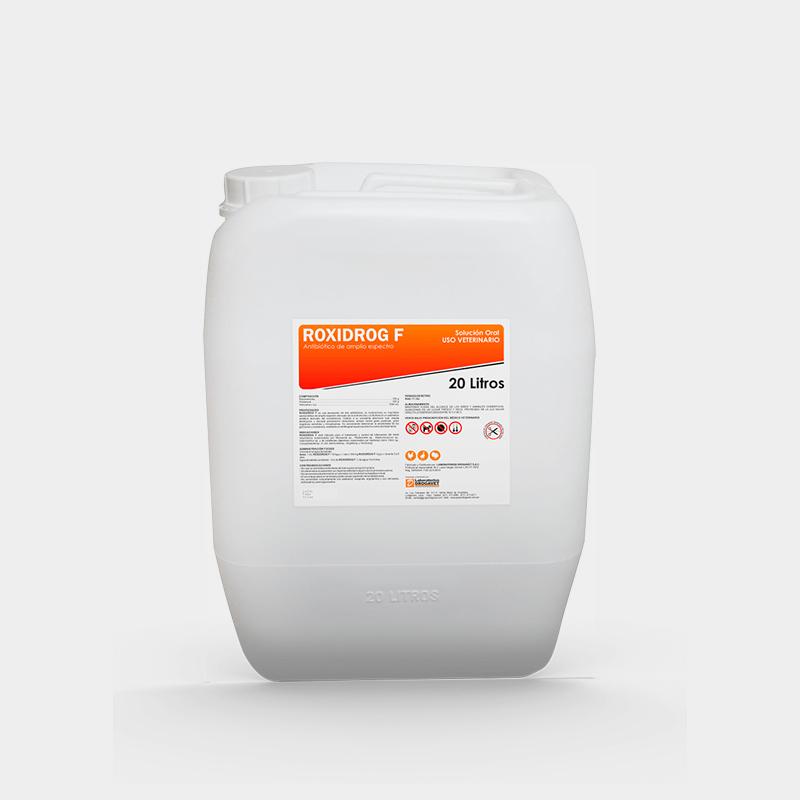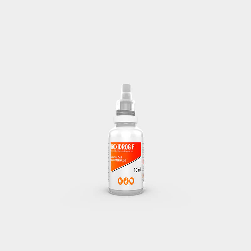ROXIDROG F es una asociación de dos antibióticos, la roxitromicina un macrólido semisintético de amplio espectro derivado de la eritromicina y el florfenicol un antibiótico sintético derivado del cloranfenicol. Debido a su excelente absorción oral, amplia distribución y elevada penetración intracelular, actúan contra gram positivas, gram negativas sensibles y micoplasmas. Es conveniente determinar la sensibilidad de los gérmenes y resistencia, mediante un antibiograma para acortar los ciclos de tratamiento.