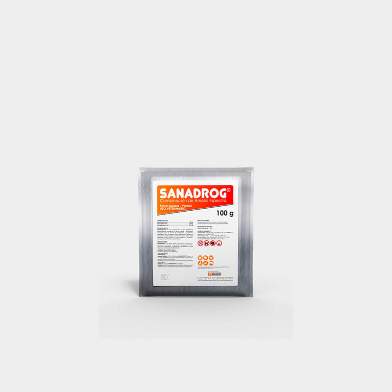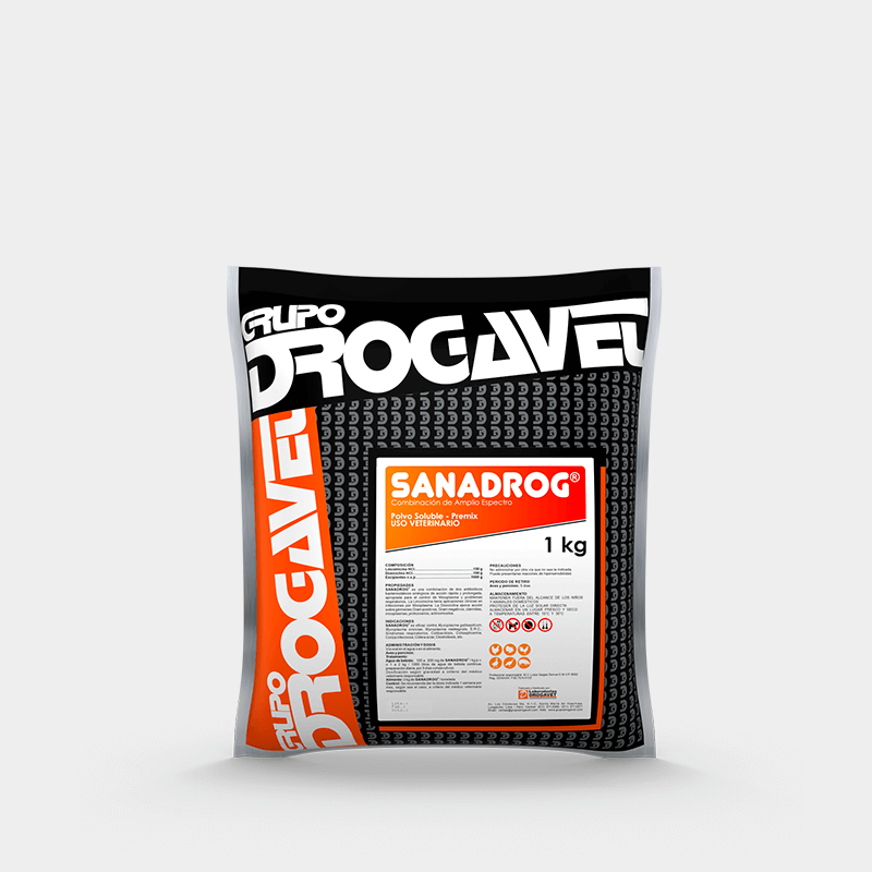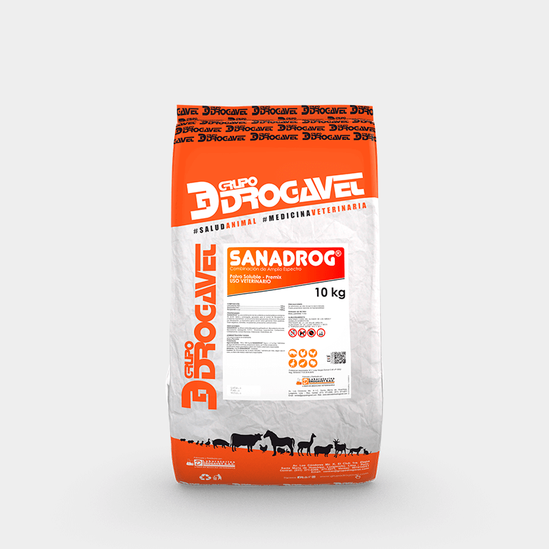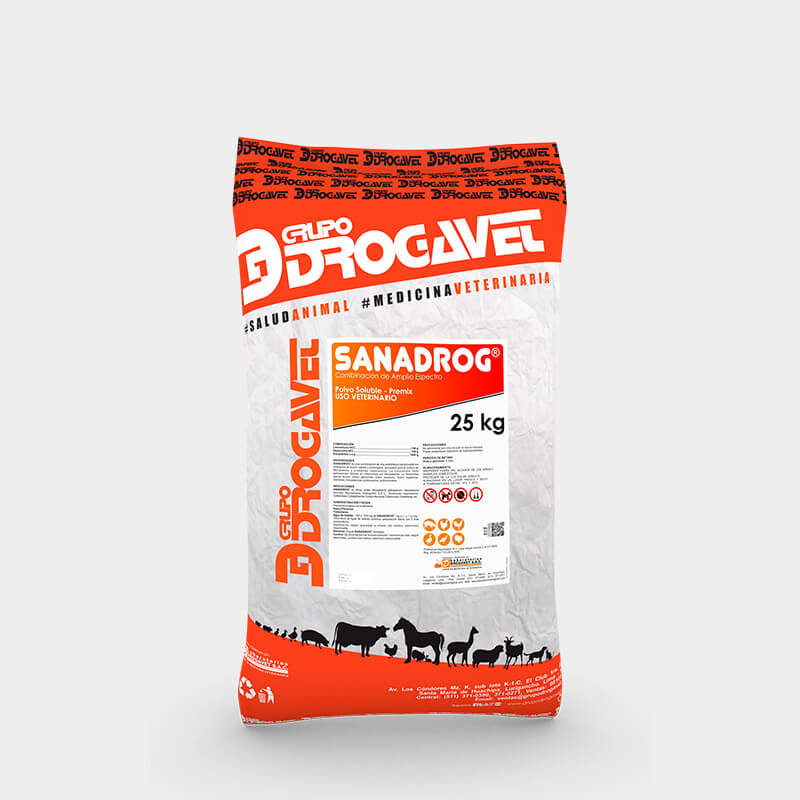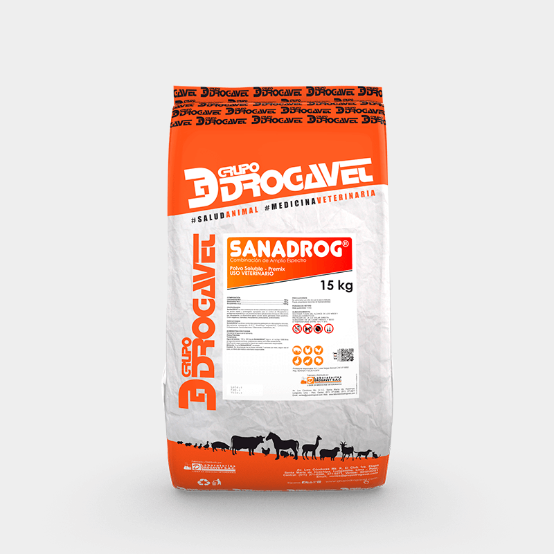 SANADROG is indicated in poultry (chickens, turkeys, ducks, roosters, rearing layers and rearing breeders) for the treatment of respiratory syndromes, Mycoplasma spp., C.R.D., colibacillosis, colisepticemia, infectious coryza, avian cholera, clostridiosis.