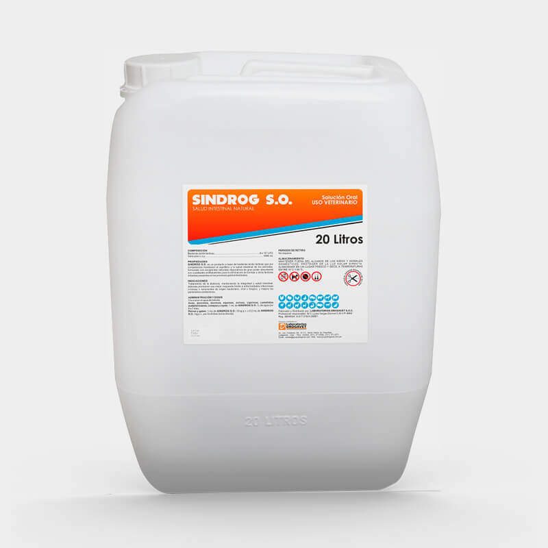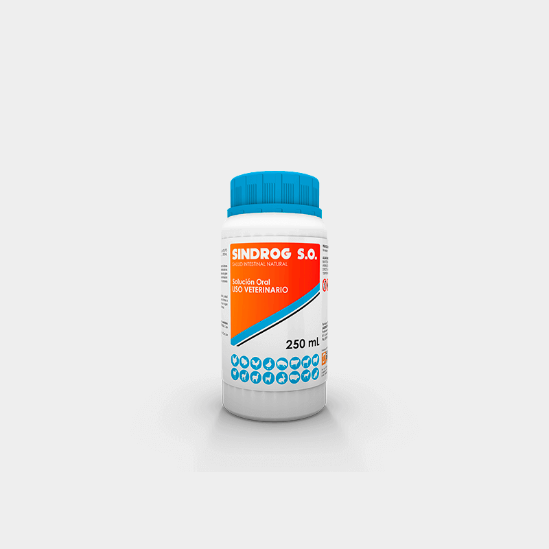 SINDROG S.O. es un producto a base de bacterias ácido lácticas que por competencia mantienen el equilibrio y la salud intestinal de los animales, formulado con excipientes naturales depurativos de gran poder absorbente con cualidades antiflatulentas para la eliminación de toxinas u otros factores irritantes presentes en los procesos gastrointestinales.