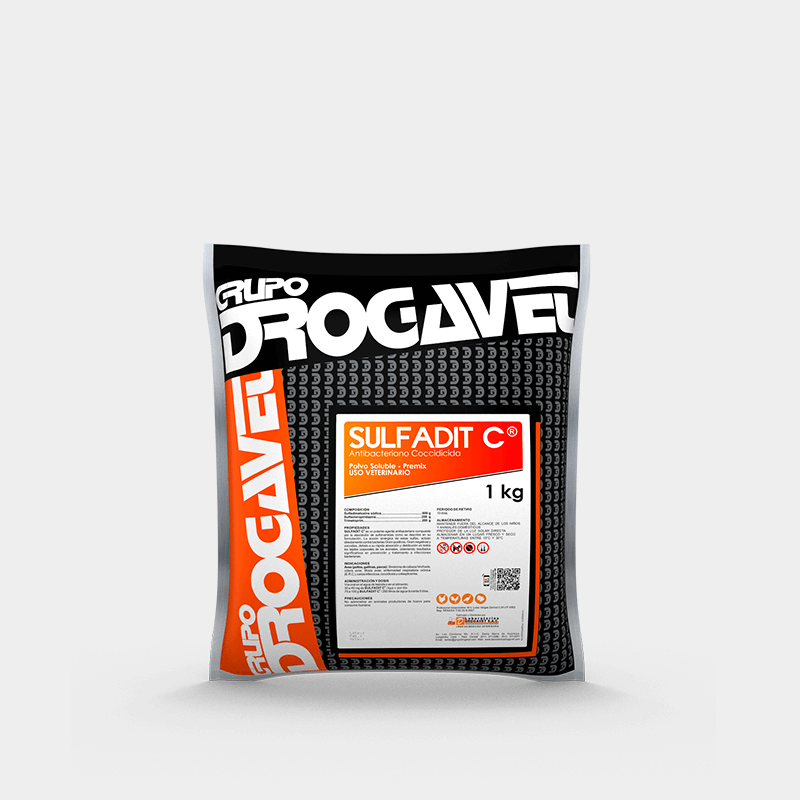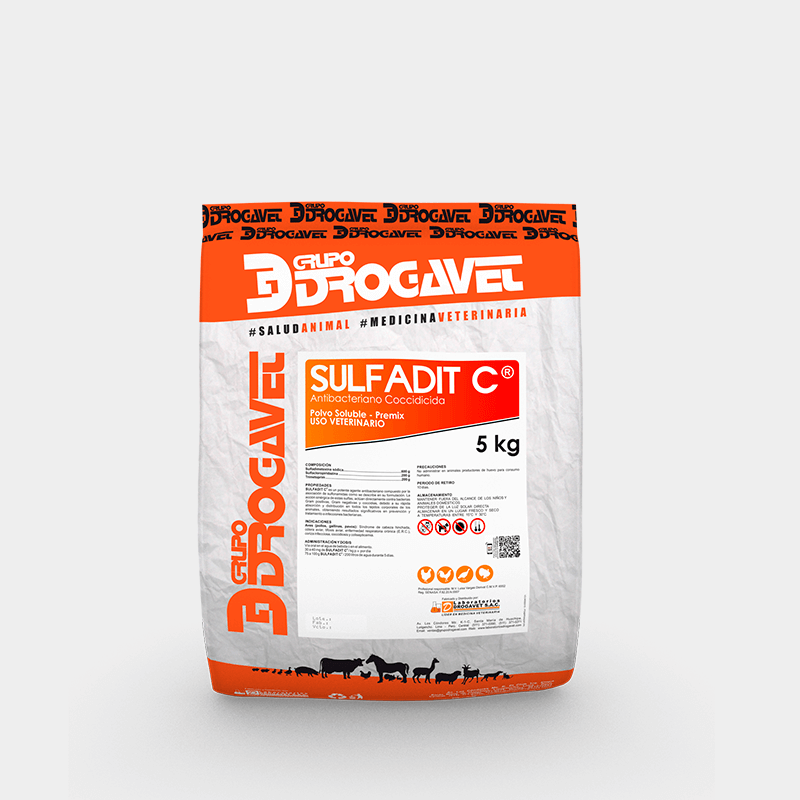 SULFADIT C is a potent antibacterial agent composed of the combination of sulfonamides and trimethoprim. The synergistic action of its components, acts directly against Gram-positive, Gram-negative bacteria and coccidia due to its rapid absorption and distribution in all significant tissues. Its use is recommended in the prevention and treatment of bacterial infections.