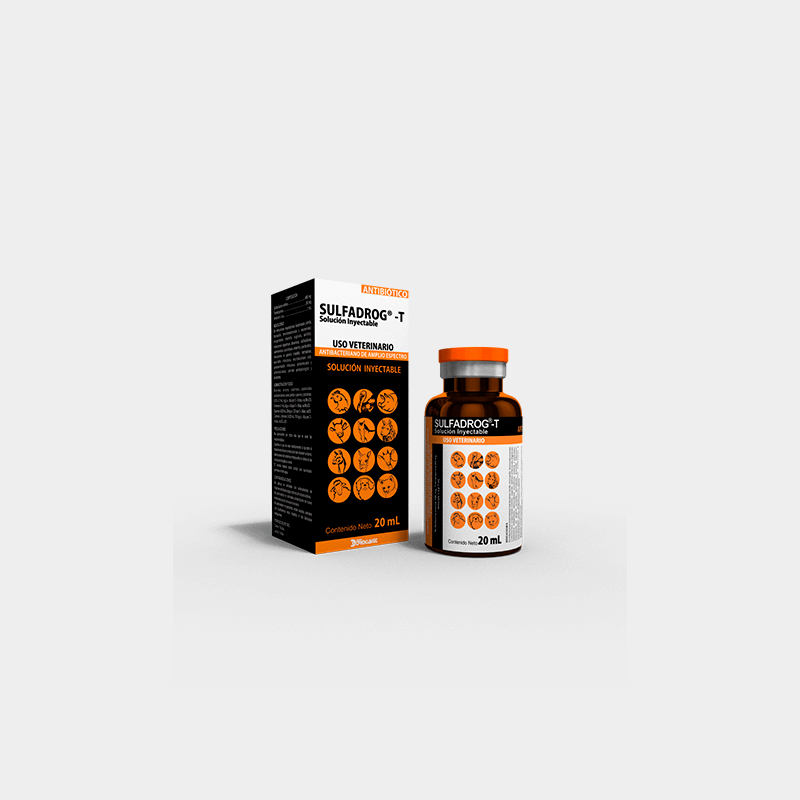 SULFADROG -T Inyectable, es la asociación sinérgica de sulfadiazina y trimetoprima, que en la proporción utilizada produce concentraciones plasmáticas óptimas para una actividad antibacteriana de amplio espectro. Cada uno de estos ingredientes bloquea un paso de la vía metabólica de las bacterias, impidiendo su reproducción y eliminando la enfermedad.