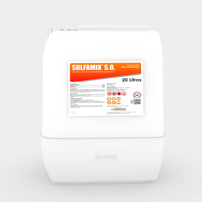 SULFAMIX S.O. es una potente combinación de quimioterápicos de gran actividad bactericida. La acción sinérgica del SULFAMIX S.O. actúa directamente contra bacterias gram positivas y negativas, asociado a su rápida absorción y distribución en todos los tejidos corporales. Su eliminación es por vía renal.