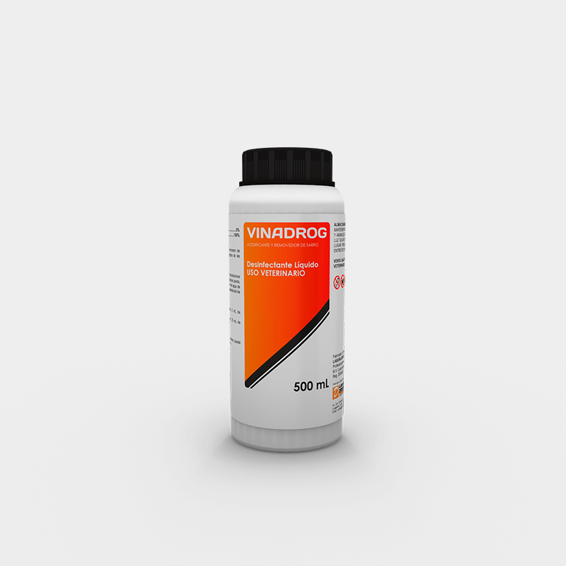 VINADROG is indicated in livestock farms (meat chickens, layers, turkeys, ducks, swine) as an acidifier of drinking water, as well as for cleaning and disinfecting water systems.