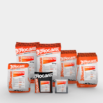 ENROFLYN P10 has enrofloxacin as its active principle, a broad spectrum antibiotic, from the group of fluoroquinolones, which acts directly on the nucleus of bacteria, inhibiting the bacterial enzyme: DNA-gyrase, which results in the interruption of the synthesis of DNAand RNA, giving it a high bactericidal ef fect against Mycoplasma spp., Gram-positive and Gram-negative bacteria.